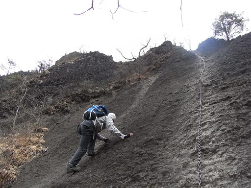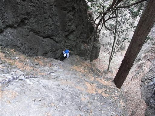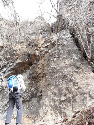 小さな鎖場を過ぎた後、本格的な鎖場に到着する。