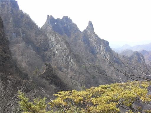 裏妙義は遠くから見るとあまりギザギザしていない。