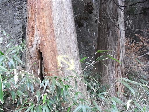 登山道は完全な安全地帯に突入。辺りは杉の巨木が林立している。
