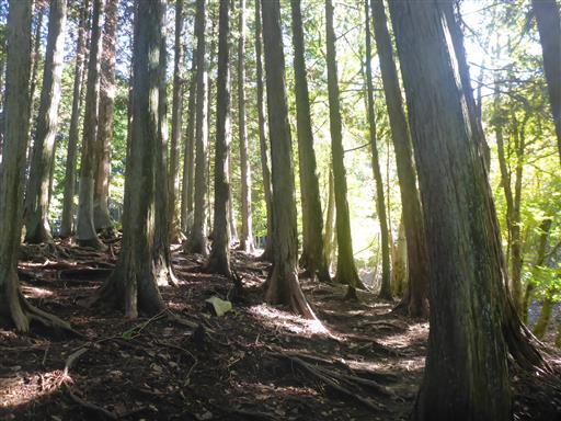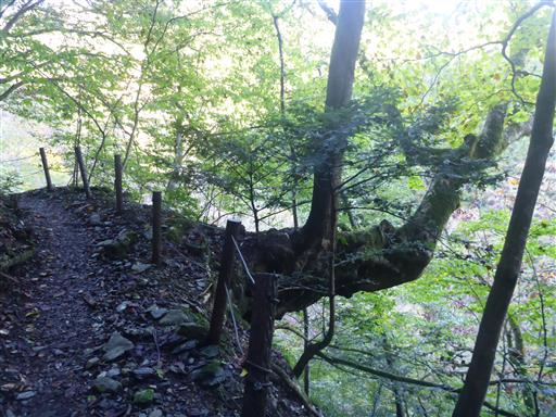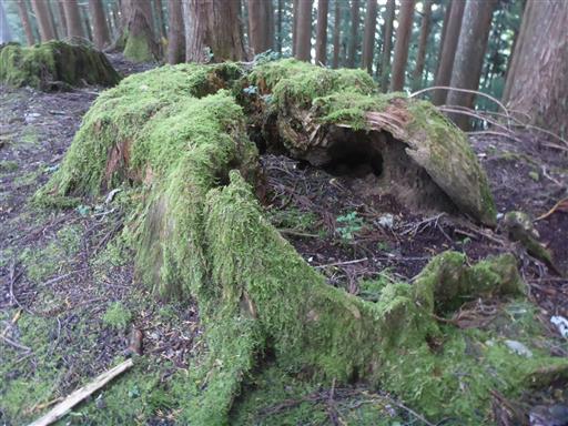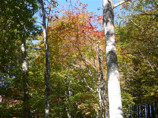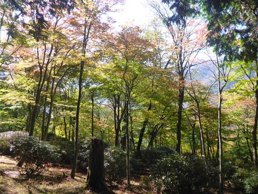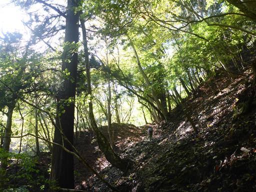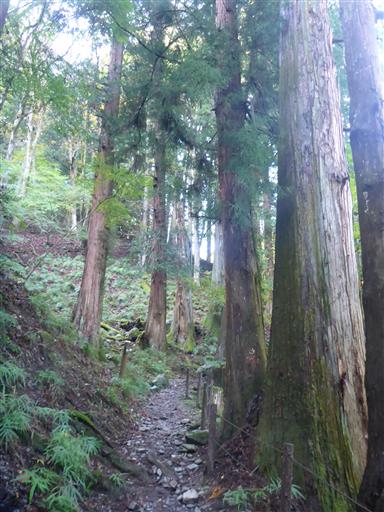 ここからは尾根道。この辺りから杉ではなく自然林が広がるようになる。