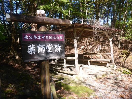 薬師堂跡。側の解説板によると、三峰山表参道の休憩所だったようだ。