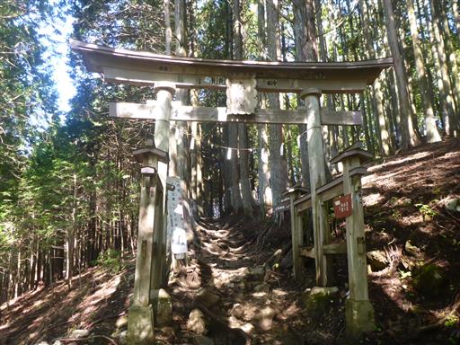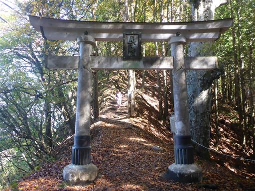 ここで雲取山への道と分かれて、鳥居を潜って妙法ヶ岳を目指す。