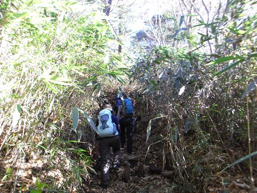登山道でないところは一歩も踏み込めないほど笹が密生している。