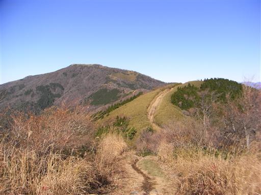 左手に大きく盛り上がっている明神ヶ岳まで、縦走路が続いている。