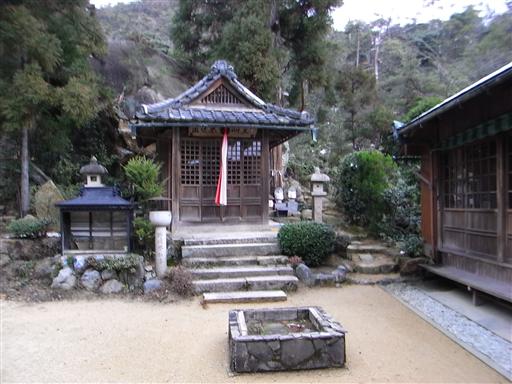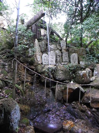 小さな人工の滝がある。滝に打たれる修行をするためのものだろうか?