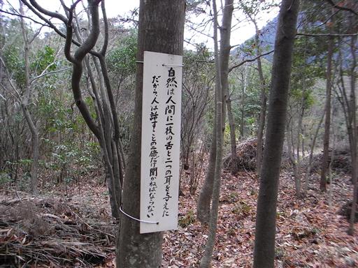 寺に通じる道には、所々に教訓の書かれたプレートが点在している。
