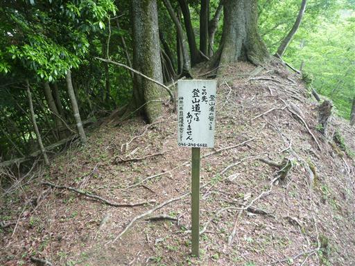 鍋嵐に向かう尾根を進むとすぐに、注意書きの標識が出ている。