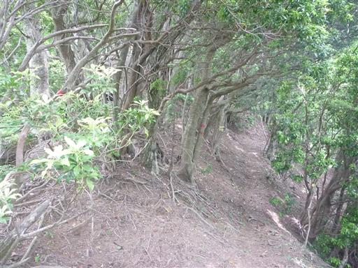 430~440mピークに到着する。登山道はこのピークを巻いて、北東に延びる尾根を下っていく。