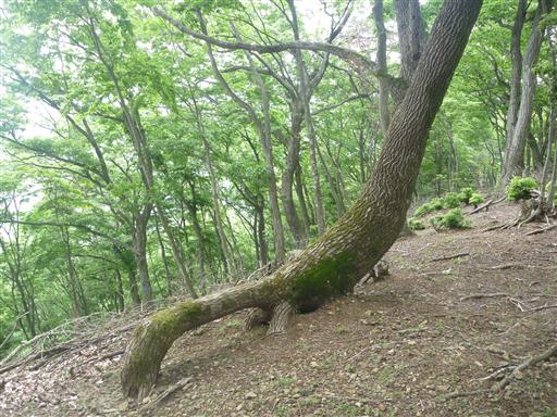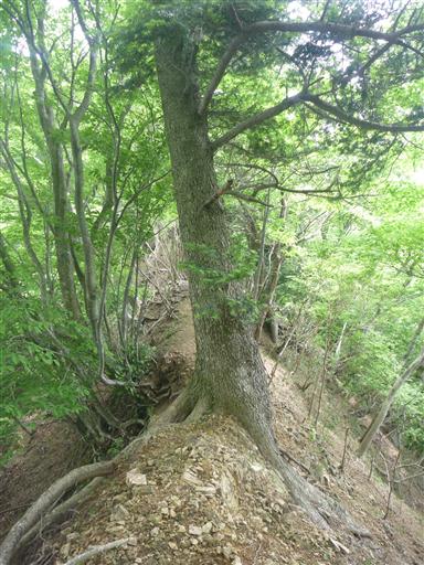 細い尾根の真中で、巨木が行く手を阻んでいる。