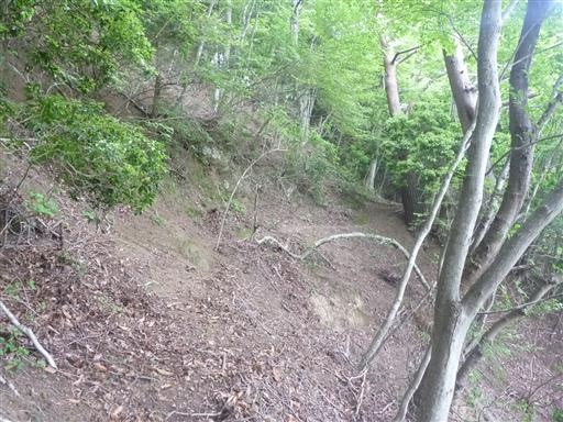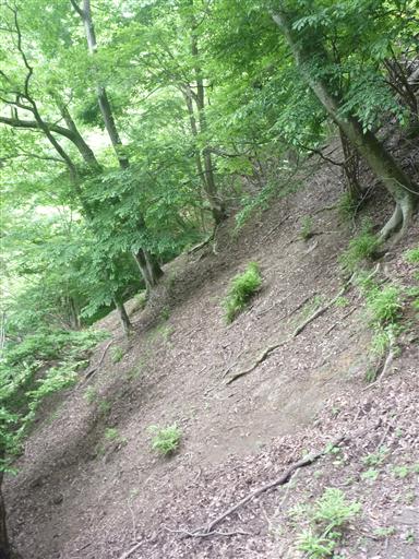 しかたがないので、湖岸の急斜面をトラバースして土山峠に向かう。