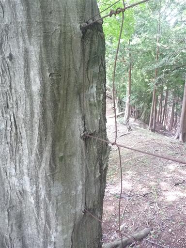 ここにも金網が張られている。金網が木にめり込んでいる。