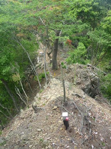 再び尾根に合流する。巻き道と719mピークに向かう道との分岐点だ。