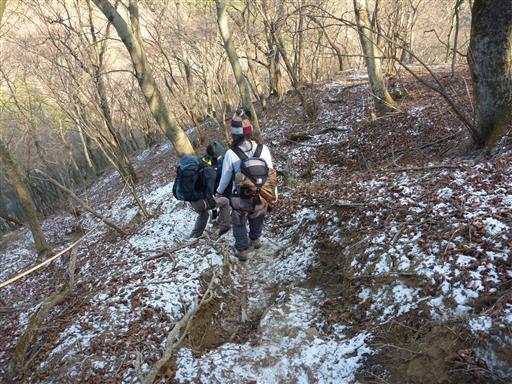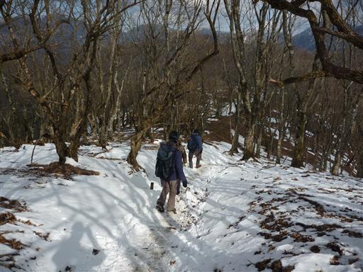 しばらくは塔ノ岳に続く稜線を歩くが、この辺りは少し雪が多い。