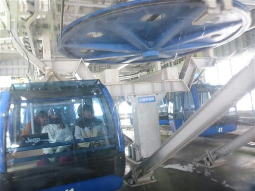 続いてゴンドラに乗る。ゴンドラはスキー板を脱いで運ばなければいけないが、