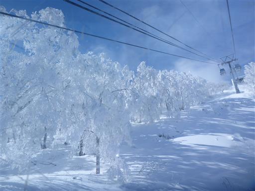 青空が出てくる。ゴンドラから眺める樹氷が美しい。