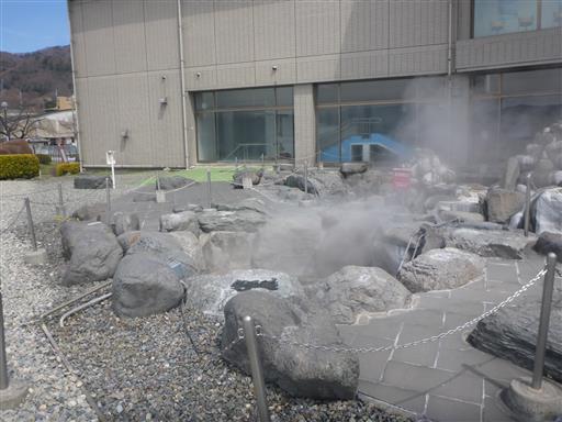 この諏訪湖間欠泉センター、昔は自噴していたのだが、力を失って機械で噴出させている。