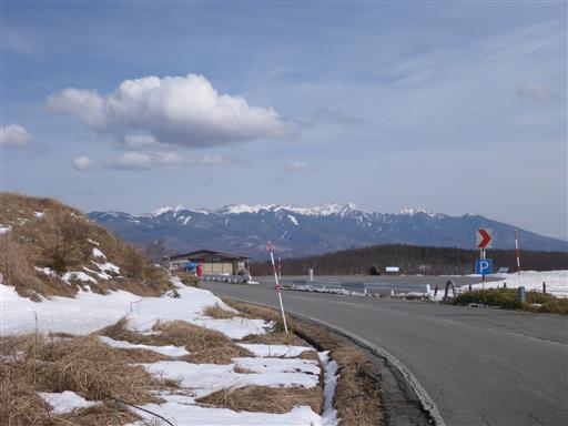 コーナーを曲がると富士見台が見え、背後に八ヶ岳が現れる。