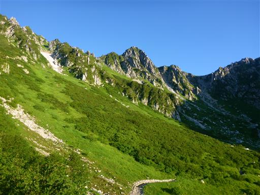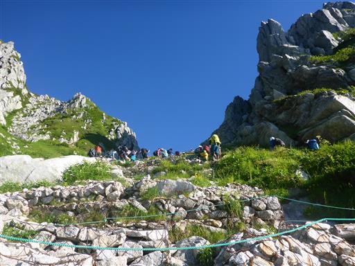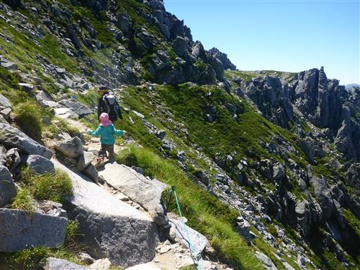 こういう道は岩を登る場所より、トラバース道の方が危険だ。