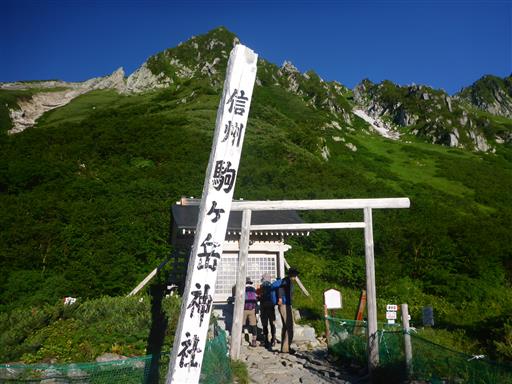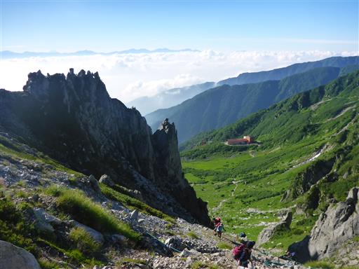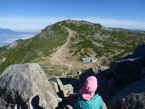 中岳と木曽駒ヶ岳の鞍部に下る。ここには山小屋が建っている。