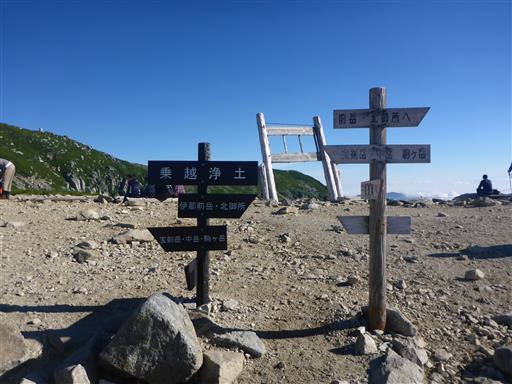 乗越浄土に到着する。これまで風がなかったのに、稜線は風が吹き抜けて寒い。