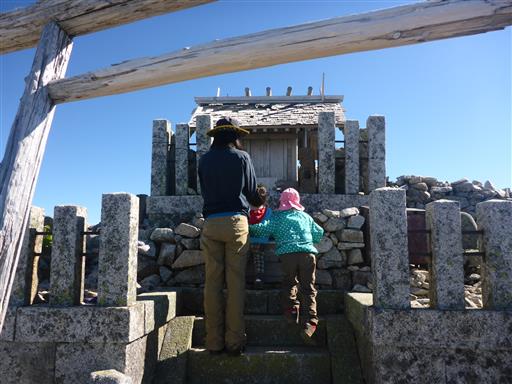 駒ヶ岳神社にお参りしたら、風を避けられる場所で昼食をとる。