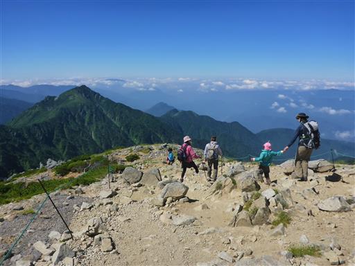 中岳に到着。ここから下って登ったら木曽駒ヶ岳だ。