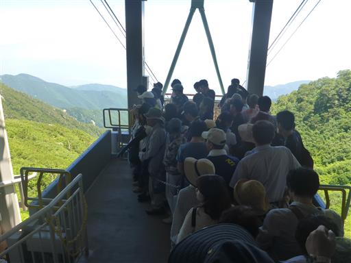 帰りのロープウェイは混雑している。30分ほど列に並んで乗車できた。