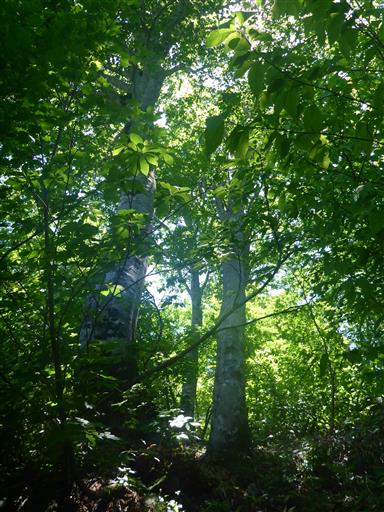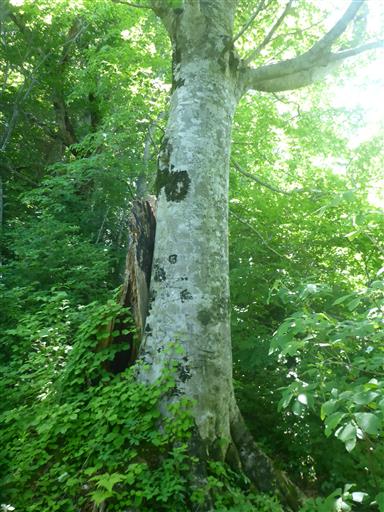 立派なブナの木。すぐ横で枯れている木もかなりの大木だ。