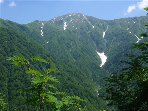 右手に見えるのは立派な山容の下津川山。登山道が無い山だ。