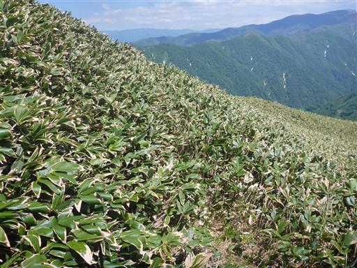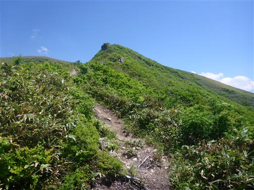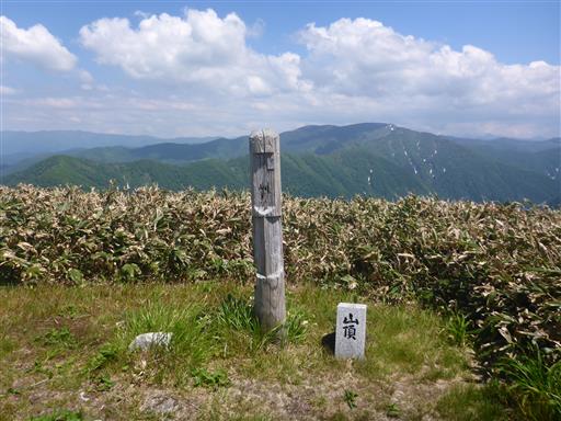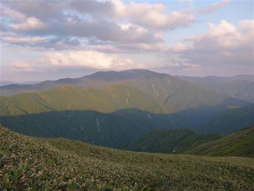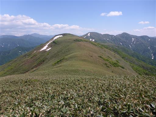 ここから南に向かう尾根は、遠く巻機山に続いているが、登山道は無い。