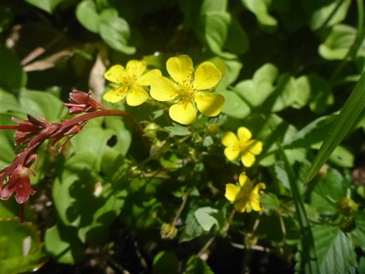 ミツバツチグリだろうか?数は少ないが黄色い花も咲いている。