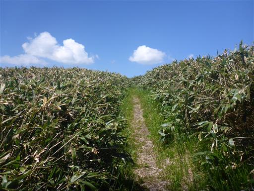 ガサゴソと音がしたので見てみると、一頭のシカが笹原を駆けている。