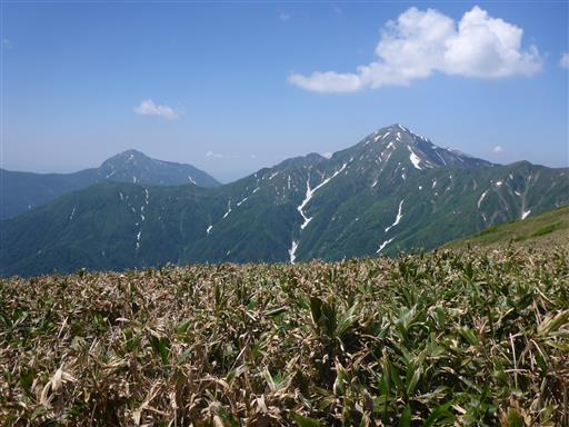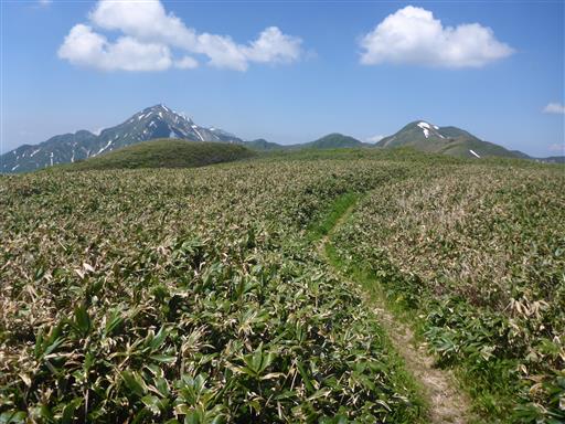 すぐ目の前には丹後山が横たわる。つかみどころのない、のっぺりとした山だ。