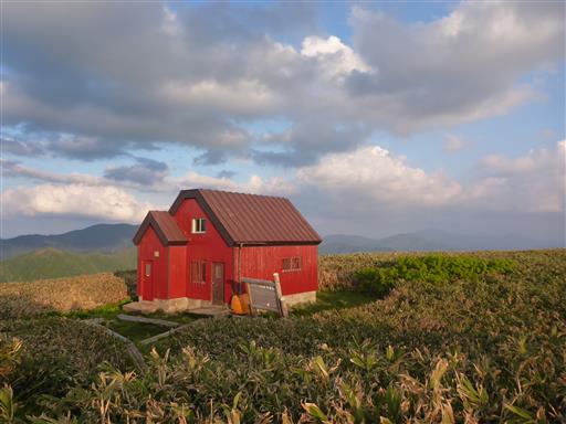 丹後山避難小屋に到着。久々の重い荷物の登山でかなり疲れてしまった。