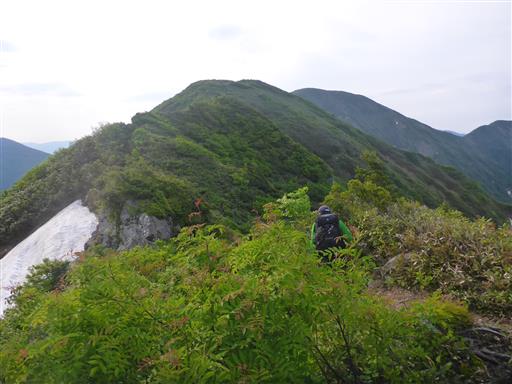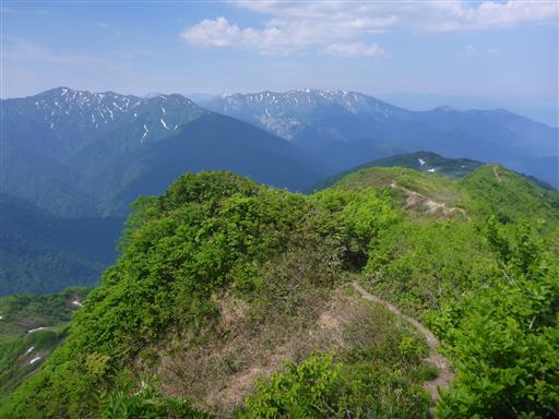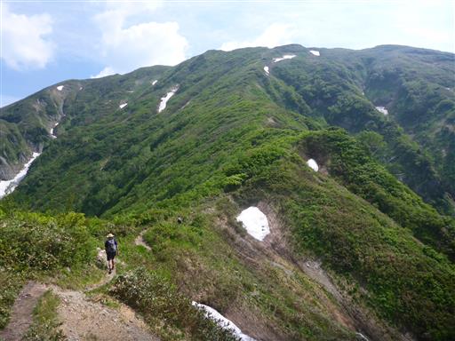 兎岳から荒沢岳に続く尾根道。近年登山道が整備された。