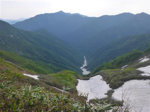 まだ大きな雪渓が残っている。ここで解け出した水のうち、