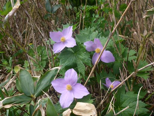 あちらこちらにシラネアオイが咲いている。1属1種の日本の固有種。