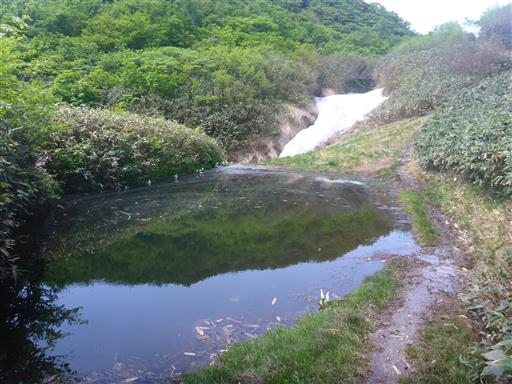 小さな池。ここは雪が完全に溶けて無くなっている。