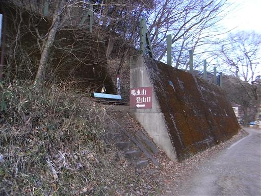 鳴虫山登山道入口に到着する。駅から直接歩ける山で、