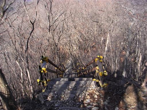 昼食をとって下山を開始する。下山道はなかなか急な尾根道だ。