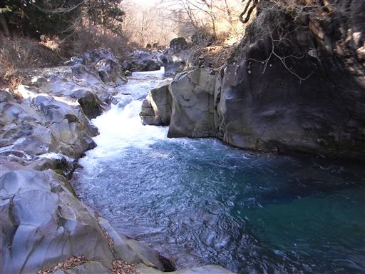 憾満ヶ淵。岩盤が削られた美しい渓谷。