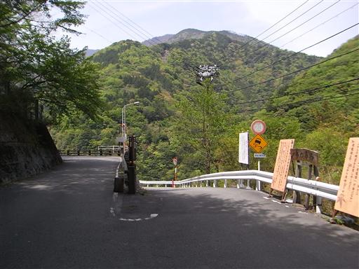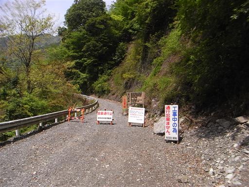 飛竜橋を渡って左折すると、すぐに通行止めの案内がある。