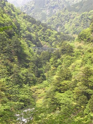 下を覗くと、はるか下方に寸又川の流れが見える。