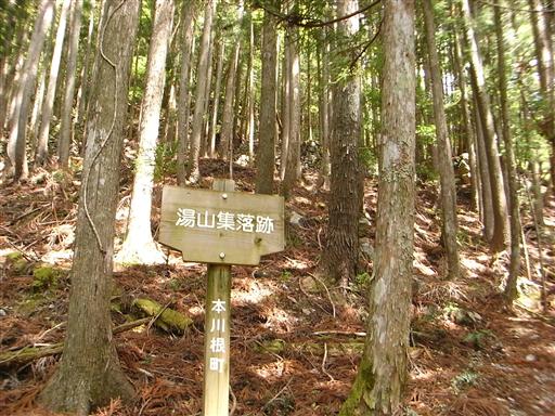 登山道を登っていくと、湯山集落跡というところに出てくる。