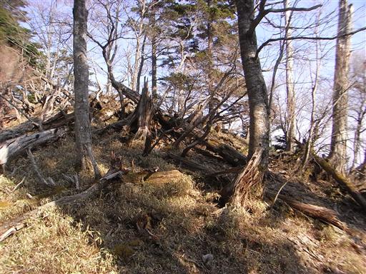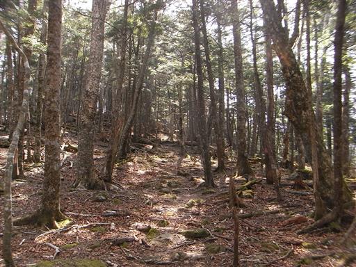 ここから先は倒木が多くなり、踏み跡は薄くなる。