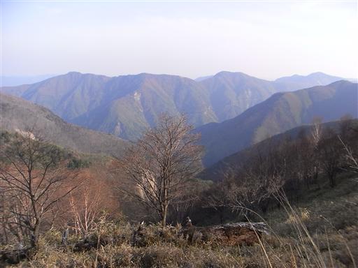 板取山、蕎麦粒山など山犬ノ段周辺の山域が望める。