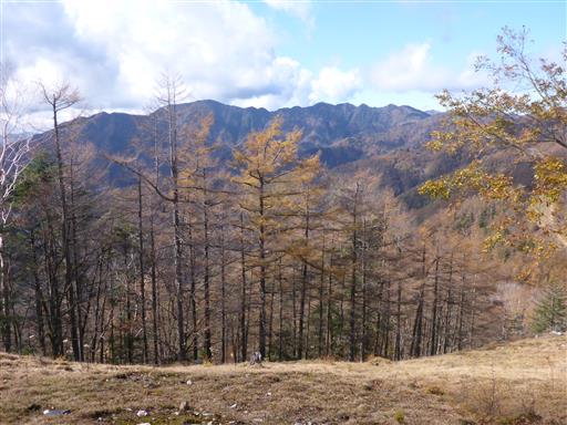 雲取山から左に伸びる尾根は奥秩父主脈縦走路。