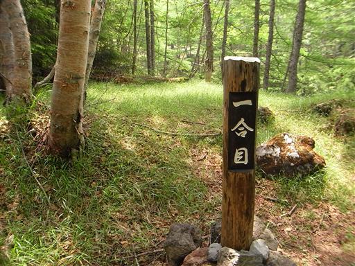 一合目の表示。丸い形ゆえ現在位置がつかみにくい山なので、