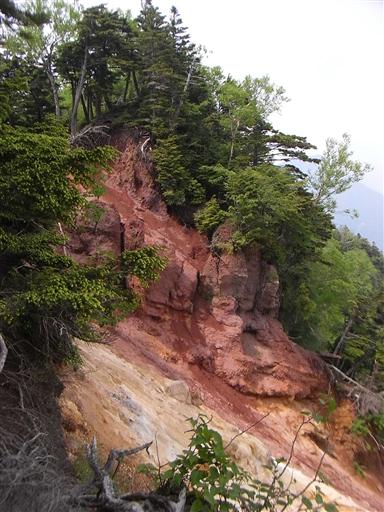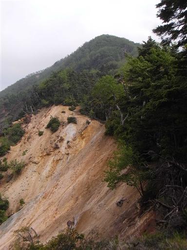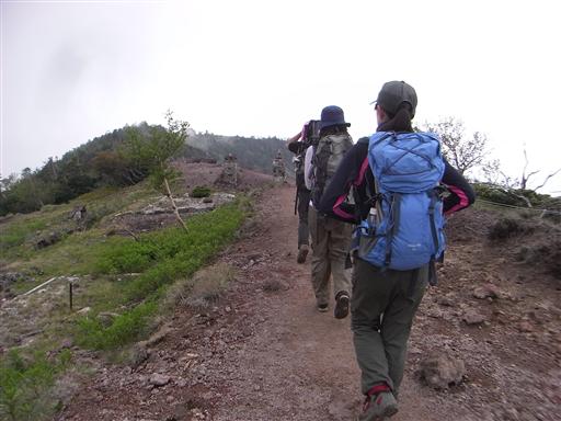 男体山の火口壁の一角に出てくる。山頂は半円形の火口壁の一番盛り上がった部分だ。