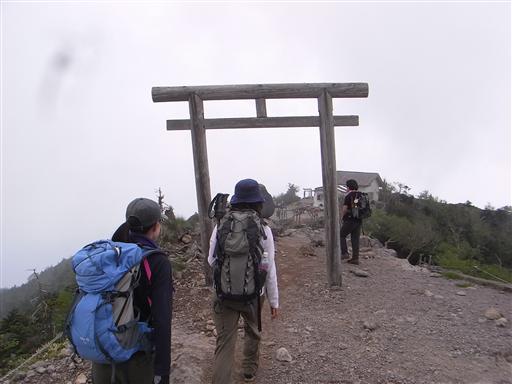 山頂へ続く急坂を登っていく。下山してくる人に次々とすれ違う。